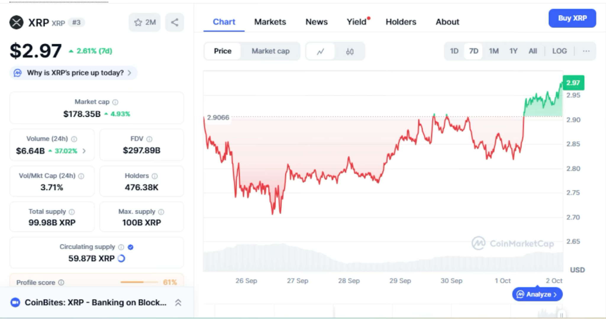 XRP Ripple is quickly regaining lost price levels following its impressive performance this week. As the broader crypto market rebounded, the payment-based altcoin is up 4% on its daily chart and 2% on the 7-day timeframe to $2.9.