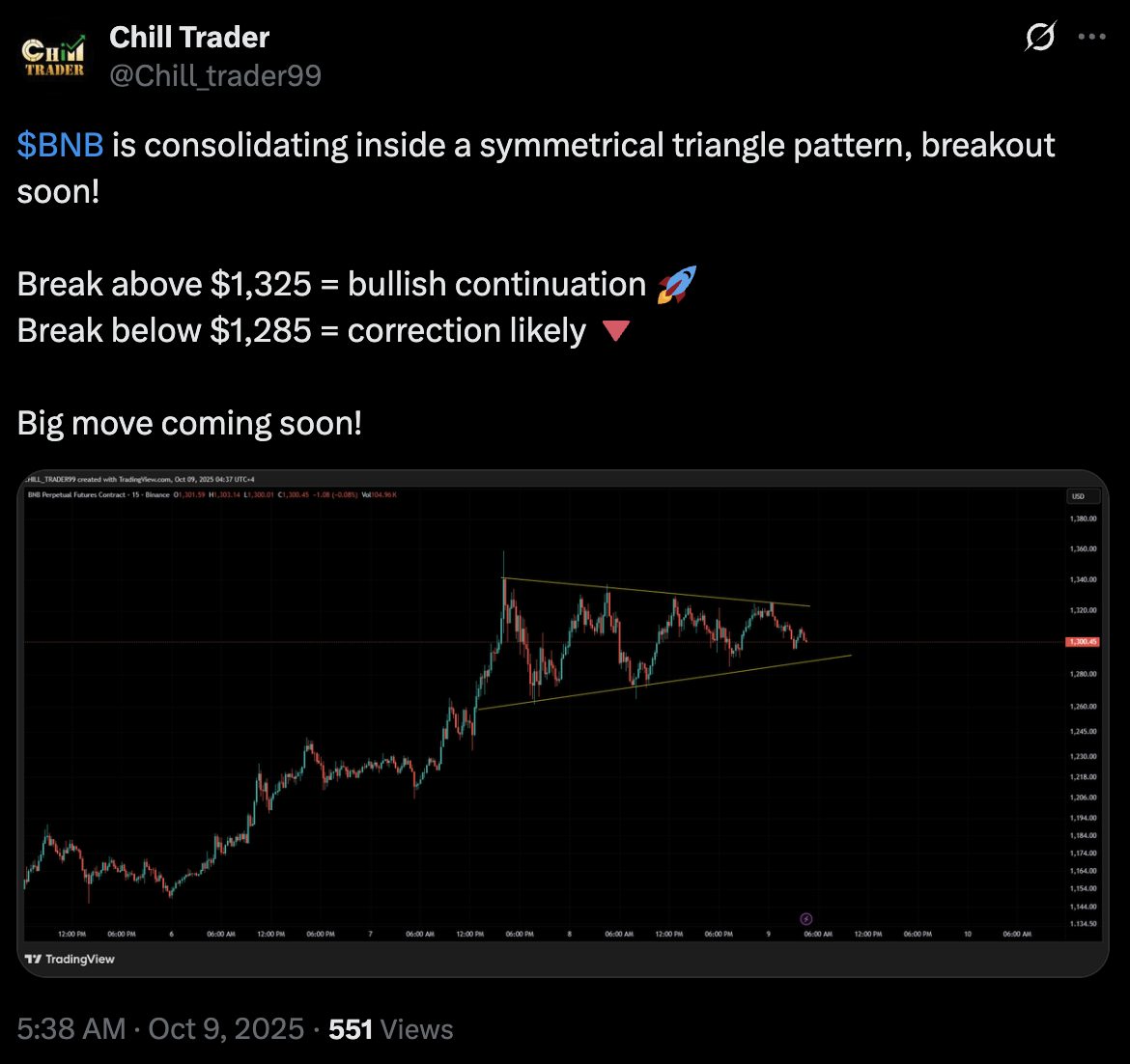 At $1,232 as of October 9, 2025, BNB could very well be consolidating before it makes another bullish move.