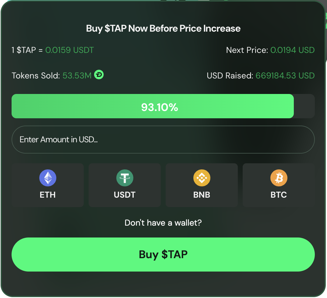 Then there is the presale’s rapid success. Over 53 million tokens out of its presale supply have gone. And more than $650K has flowed into its presale in just over a week. No other coin on the list seems to match this momentum at the moment. And that’s solid proof that $TAP could potentially be the best ICO of this year.