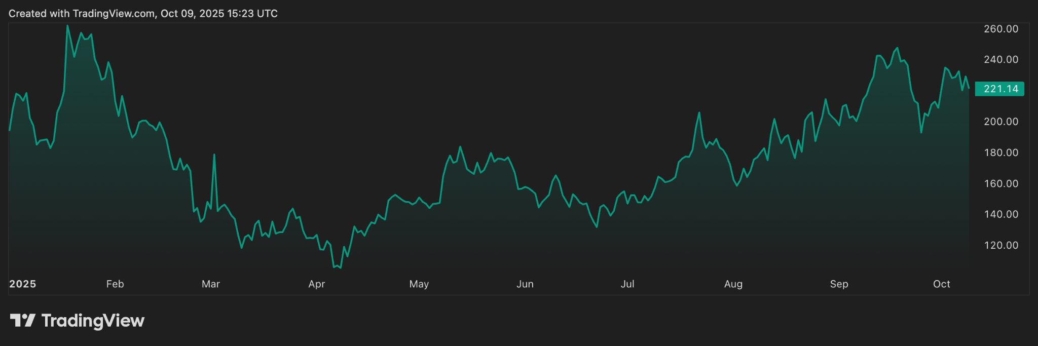 Investors seem to agree. The SOL price has climbed 17% this year. As of October 9, 2025, the price is hovering around $220.