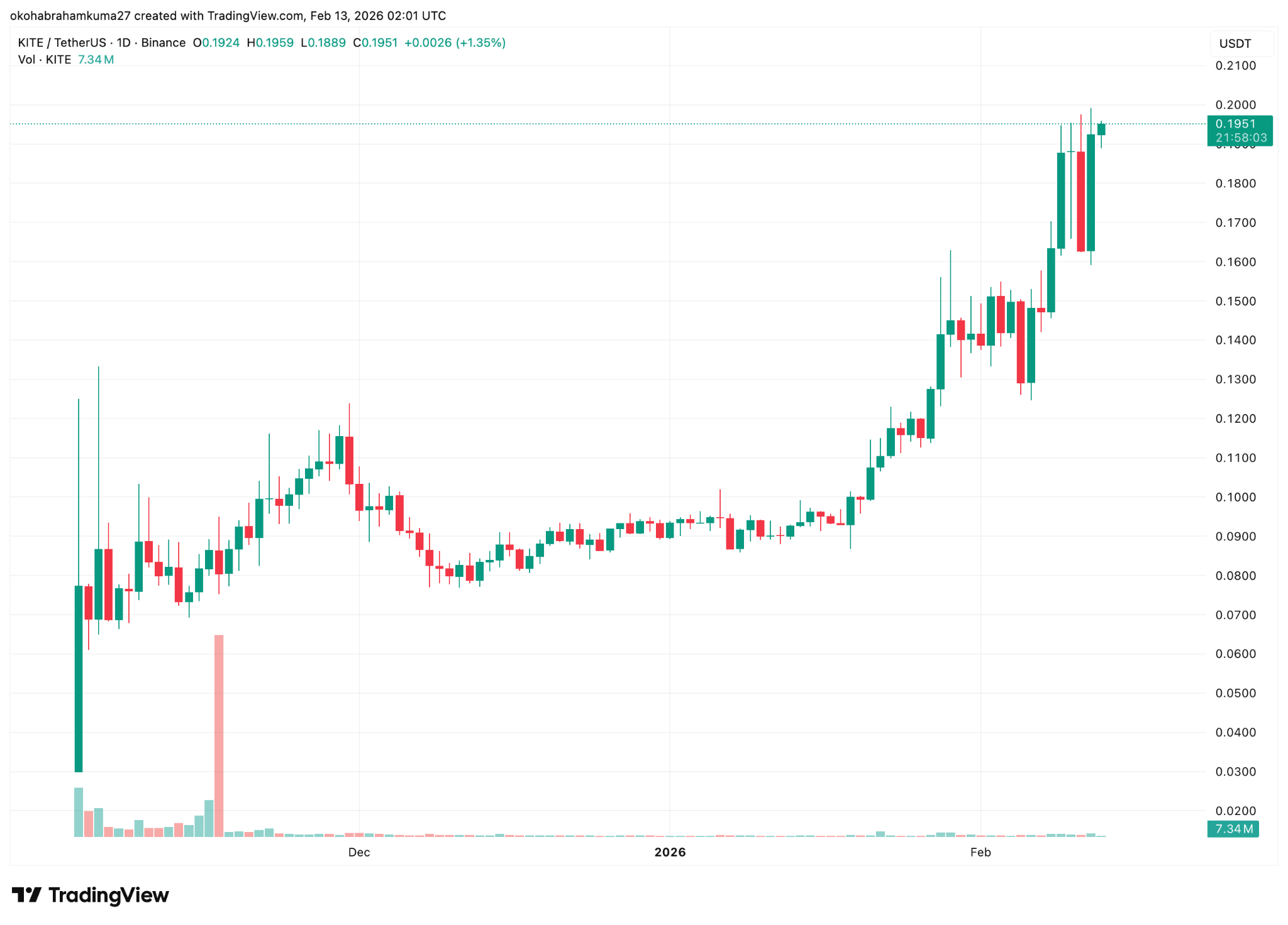 Kite AI has surged by 38% in the last seven days as of February 12th, outperforming a global market that is up only 2%. Despite the extreme fear gripping the broader sector, sentiment around Kite remains Bullish, driven by its high volatility and strong community momentum.
