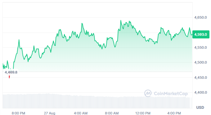 The Ethereum (ETH) price is trading over $4,500 after closing the previous weekend with minor hiccups. The overall market experienced huge liquidations after an anonymous Bitcoin whale offloaded $2.7 billion worth of BTC, dragging the ETH price down by 10% from $4,900. However, Ethereum has recovered from the damage and is currently trading in the green zone.