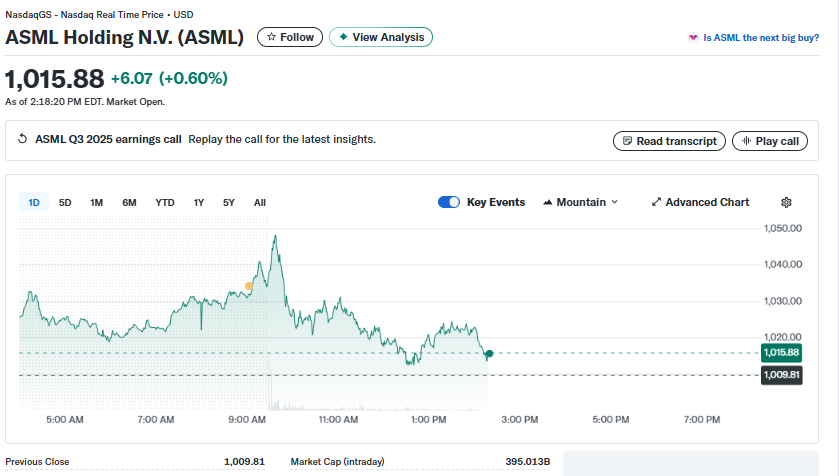 ASML Holding N.V. (NASDAQ: ASML) saw its shares climb 0.66% on Thursday, fueled by strong third-quarter demand for its semiconductor equipment.