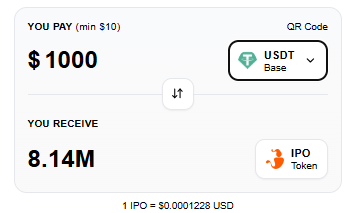 - Tokens received = 1,000 ÷ 0.0001228 = 8,143,322.48 $IPO