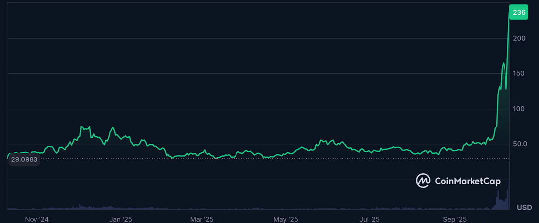 Zcash has surged to become the top-performing cryptocurrency within the top 100 by market capitalization this month, increasing by over 300%. The rise was driven by increased institutional interest, with Grayscale enabling investors to buy through its Grayscale Zcash Trust.