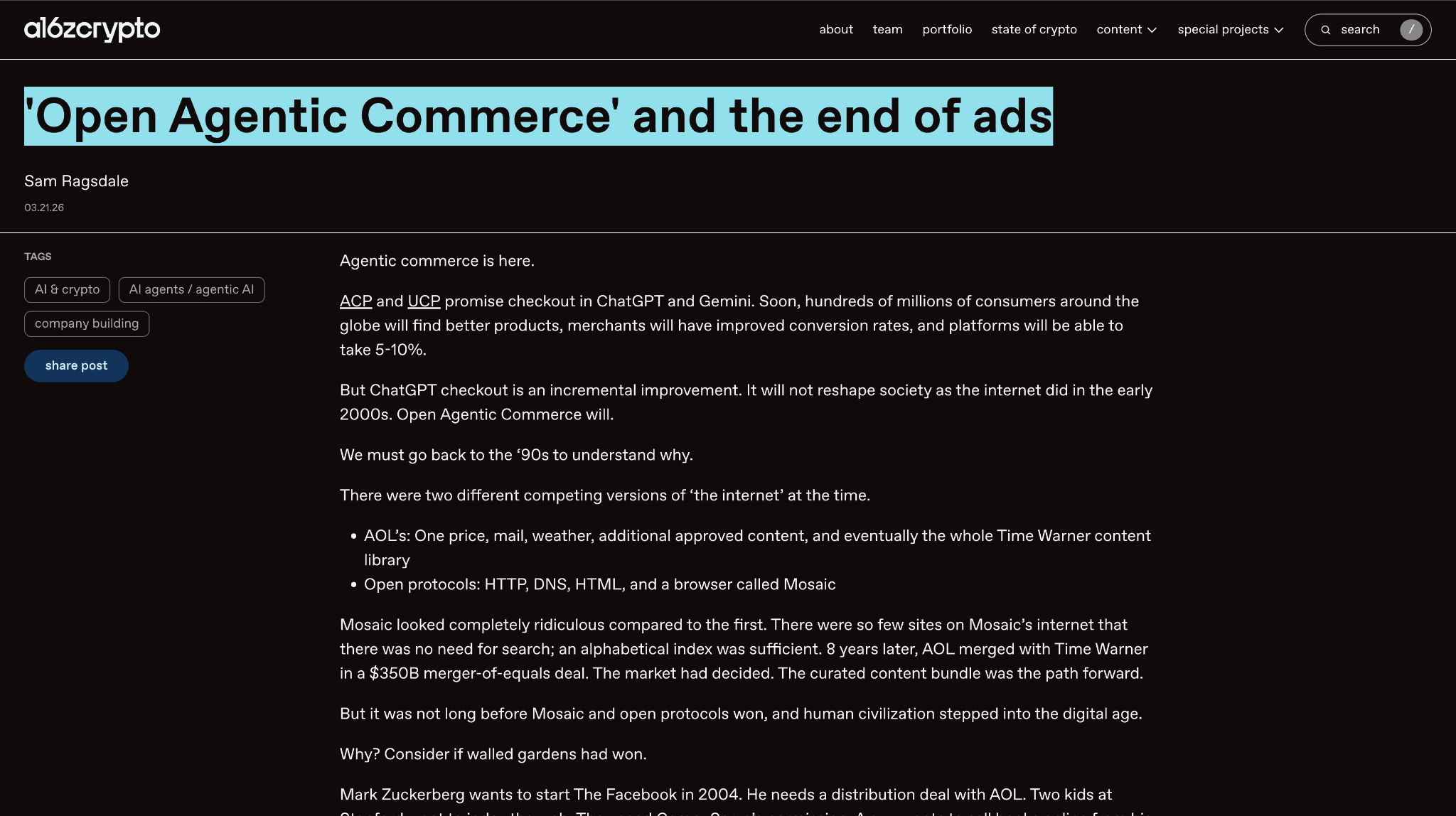 A16Z predicts AI kills internet ads