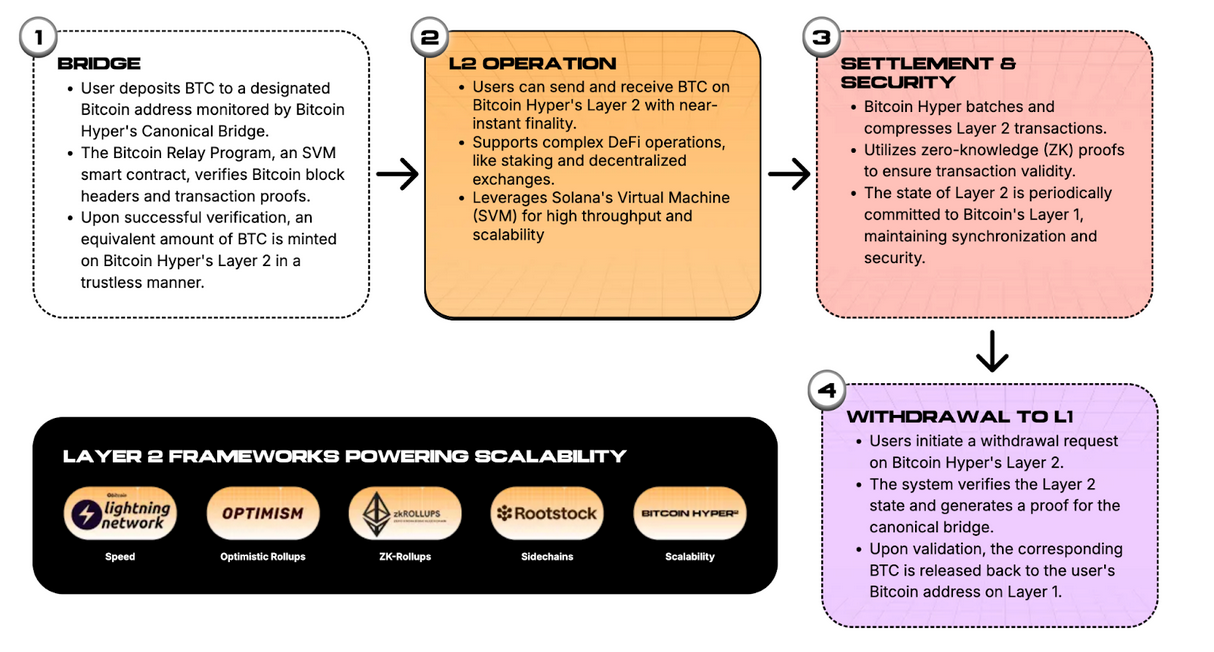 The Bitcoin Hyper blockchain is built on the Solana Virtual Machine, which means it will inherit Solana’s high speeds and be compatible with Solana, paving the way for a vibrant ecosystem.