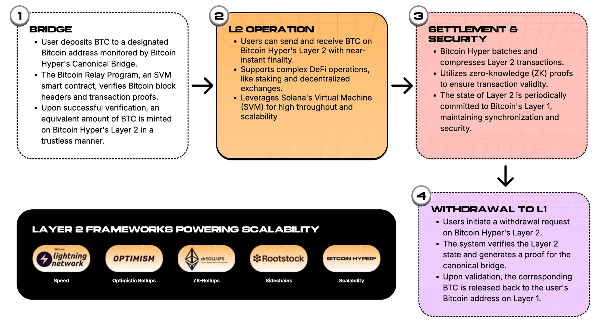 This could create a lively ecosystem on Bitcoin Hyper, including DeFi, RWAs, meme coins, and more. An additional benefit is that Bitcoin Hyper utilizes ZK-rollups, enabling it to periodically report its state back to Bitcoin L1 and leverage its immutability and decentralization.
