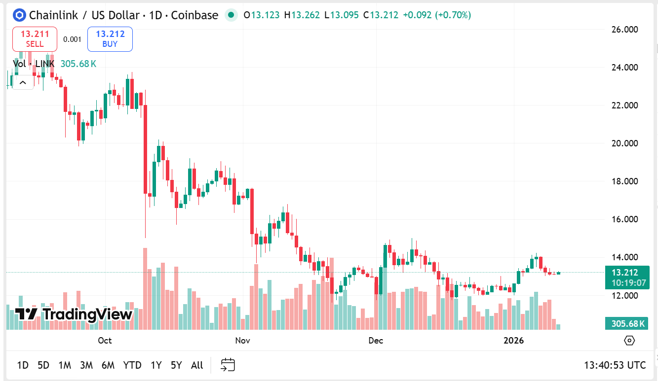 LINK trades near $13.24 with a 30-day change of +6.3%. That edges out Ethereum’s month and keeps LINK in many best crypto to buy now lists, especially among crypto investors who prefer infrastructure plays over meme cycles.