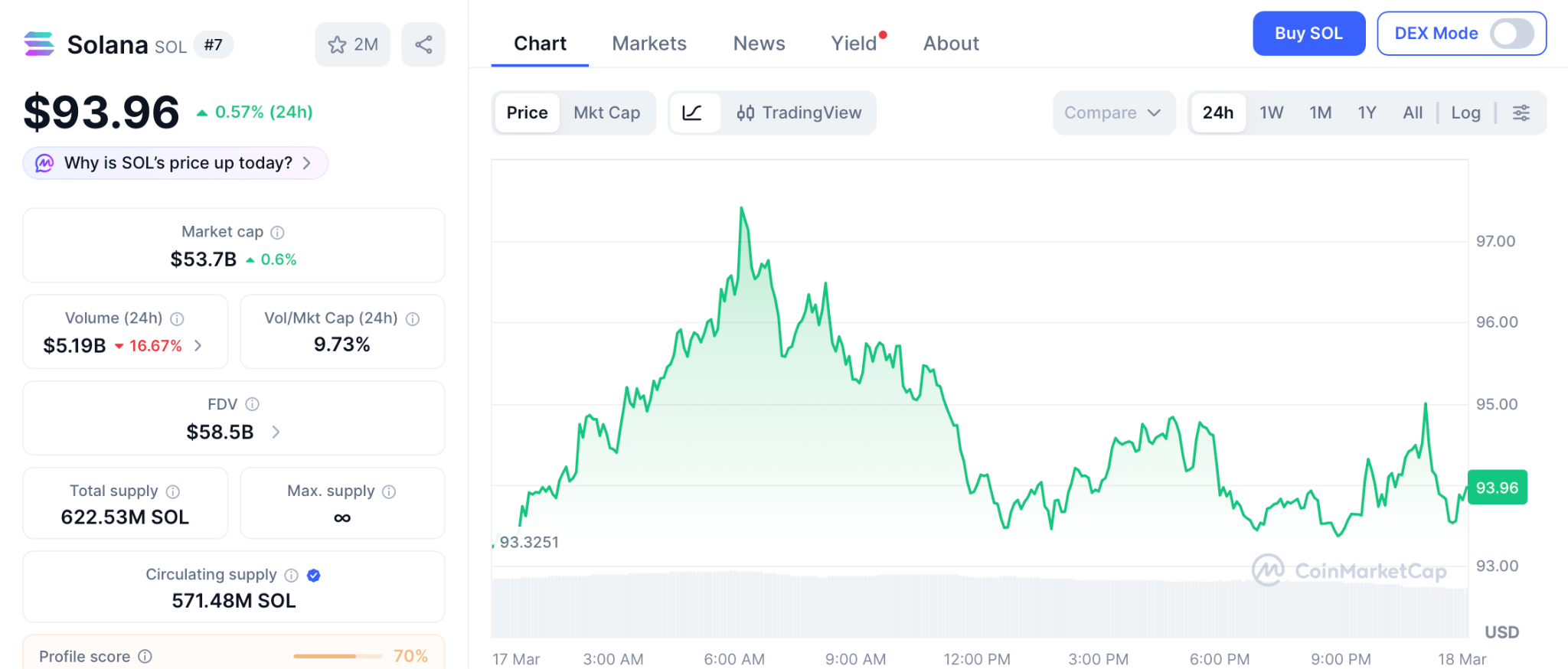 Solana has further solidified its position as one of the top cryptos to buy now, trading at $93.96 on March 17 after a strong month according to CoinMarketCap. This consistent rise is despite broader market volatility and uncertain conditions.