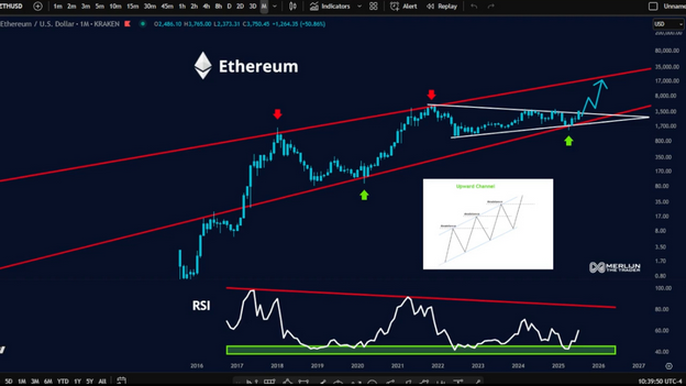 According to X analyst Merlijn The Trader, Ethereum can soar as high as $20,000, but it needs to break its historical channel for the first time—a move that would represent 375% gains from current levels and validate Ethereum‘s position as institutional crypto’s flagship asset. However, immediate resistance at $4,320-$4,340 presents seller concentration that must be cleared for momentum to continue.