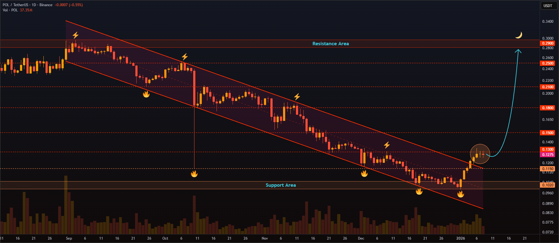 Looking at the chart, POL was stuck in a downtrend channel for the last 4 months, but started 2026 with high buying volume, causing a breakout. A retest was successfully done, and now, following the classic pattern of this type of movement, Polygon’s next targets are $0.18, $0.21, $0.25, and $0.30, which makes it one of the best cryptos to buy now.