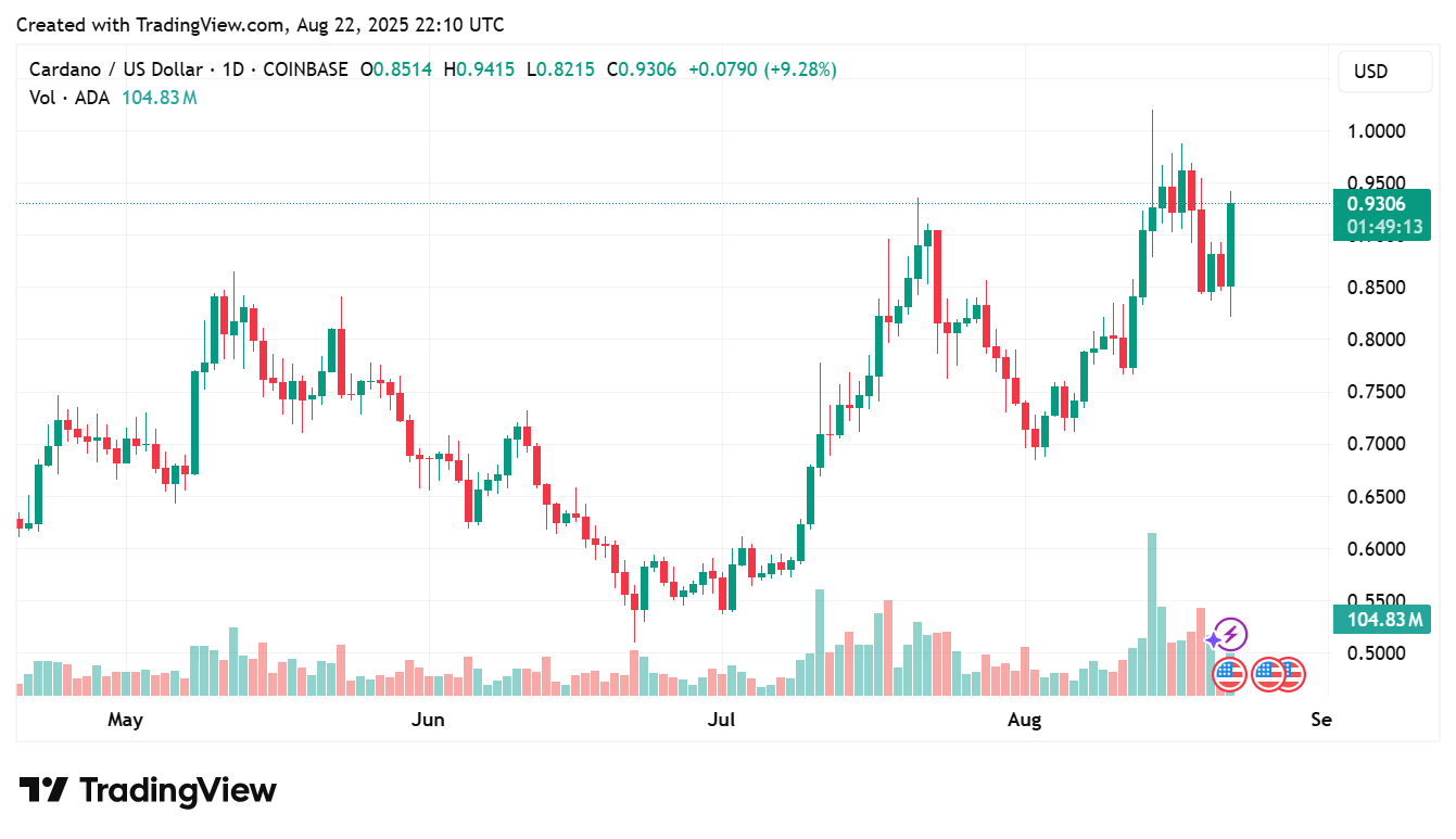 Cardano is holding steady above the $0.90 zone, reinforced by more than $900 million in institutional custody in 2025. This steady inflow signals strong market confidence, with analysts eyeing a potential move toward the $1.30 resistance.