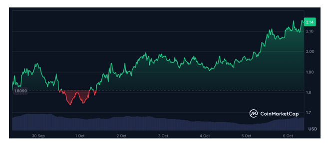 Mantle (MNT) is another of the best cryptos to buy – posting a new all-time high of $2.15 just hours ago. The token is up 16% over the past week and a wild 256% in the past year. That momentum is strong enough to push it into the top 25 cryptos by market cap.
