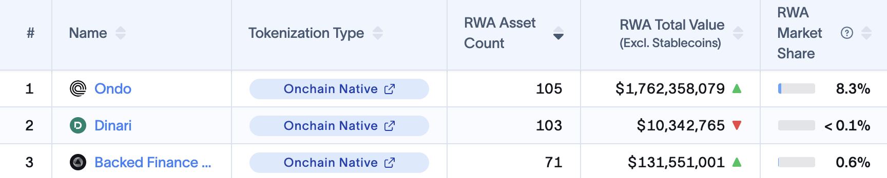 According to data from RWA.xyz, Ondo holds $1.7 billion in tokenized assets outside of stablecoins and offers 105 different assets on its network, making it one of the largest RWA projects by all counts.