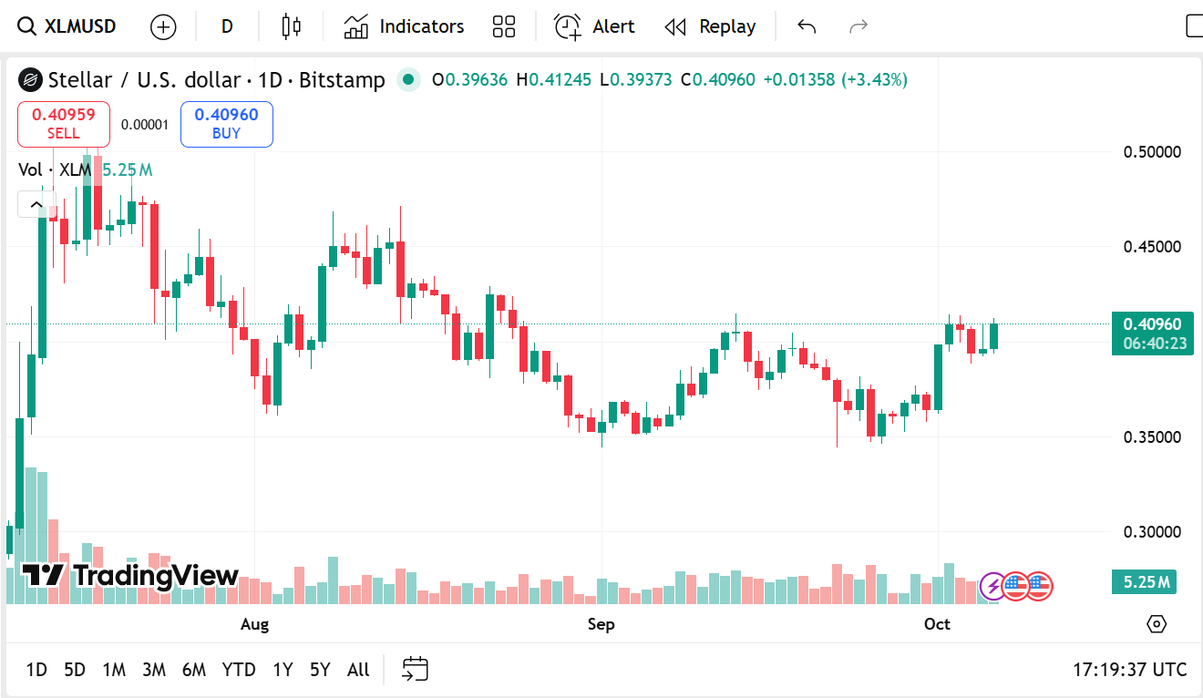 Stellar (XLM) is currently trading at $0.4096, down 0.4% in 24 hours, with a $12.9 billion market cap and over $298 million in trading volume, showing steady liquidity across centralized exchanges.