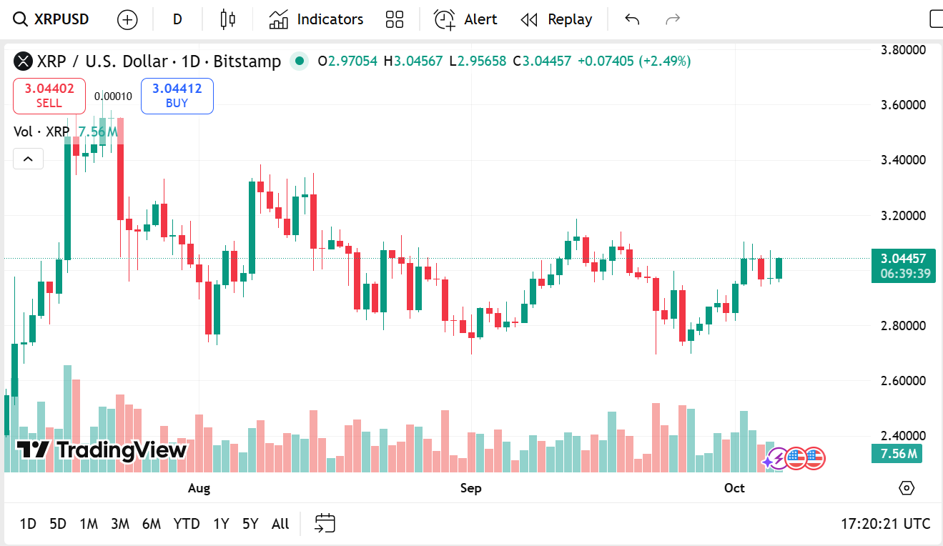 XRP, meanwhile, trades at $3.04, down 1.28% daily, maintaining a market capitalization of $179.07 billion and $4.84 billion in daily volume. Despite minor short-term declines, XRP’s role in cross-border liquidity and integration with institutional payment rails keeps it positioned as a top crypto under $5 and a leading DeFi project with proven scalability.