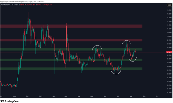 On a longer timeframe, ADA price shows powerful chart structure, including a nine-month triangle breakout pattern, sparking talk of a potential move for Cardano toward $10 if buying pressure intensifies.