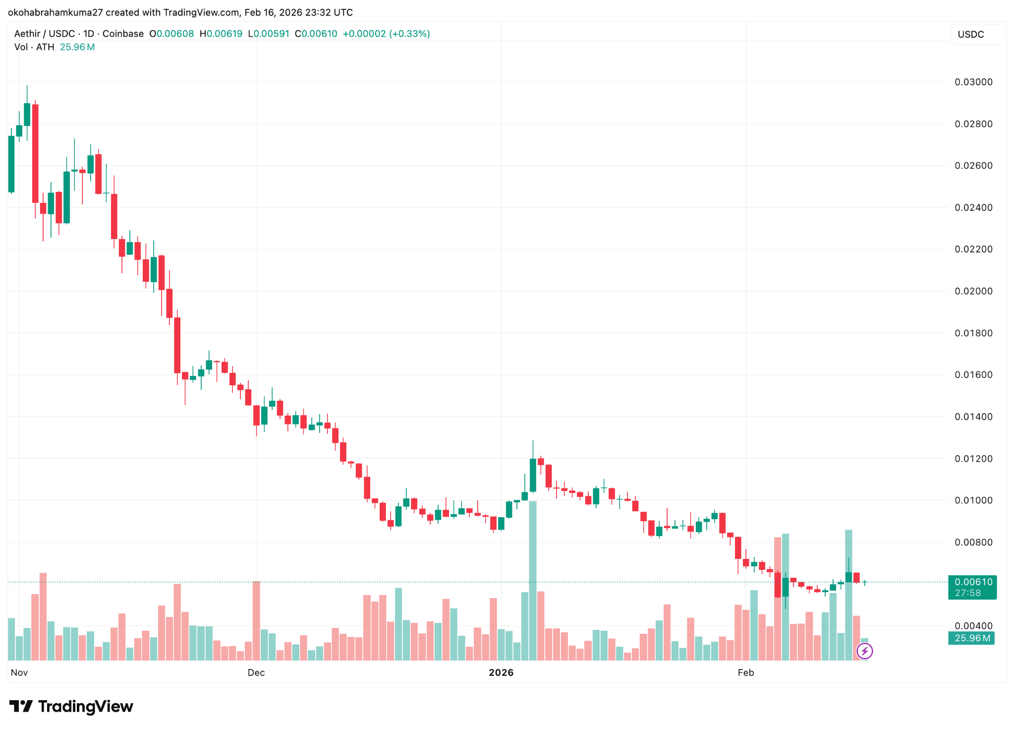 Aethir ($ATH), a decentralized cloud infrastructure platform, is currently struggling to maintain its footing. The token is trading under extreme fear conditions, with high volatility of nearly 19% as of February 16th.