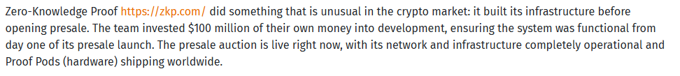 By contrast, ZKP focuses on zero-knowledge proofs, a technical approach enabling secure, privacy-preserving verification without revealing underlying data. The presale follows a daily transparent auction, releasing 200 million tokens every 24 hours, with a $50,000 daily cap per wallet to ensure fair participation.