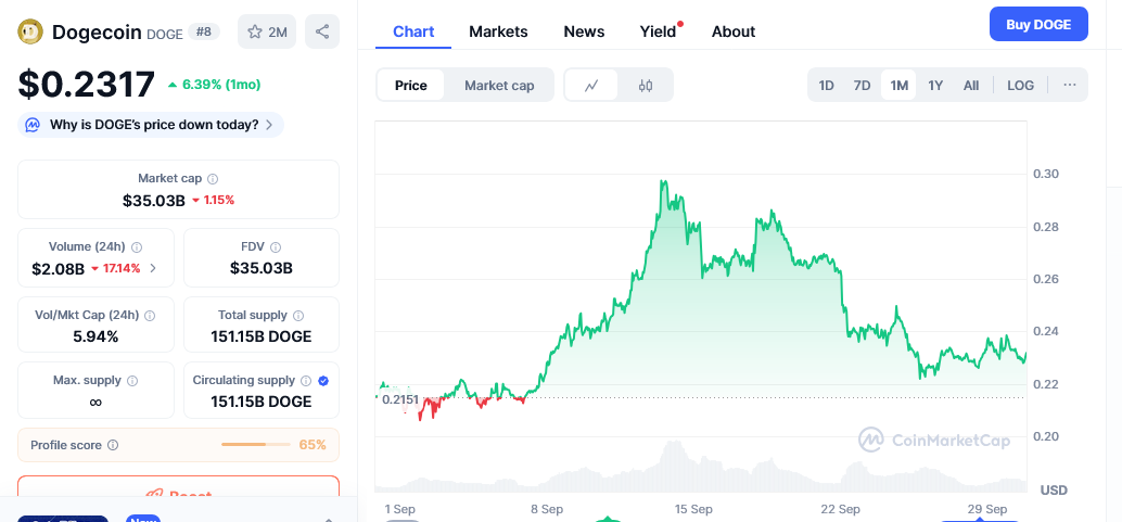 Several ETF filings under the old regulation are now being withdrawn. Additionally, investors say Dogecoin ETFs could hit the market much sooner than expected. This could help boost Dogecoin’s token performance. As of September 30, Dogecoin was trading at $0.2296 following a 4.95% drop over the past week.