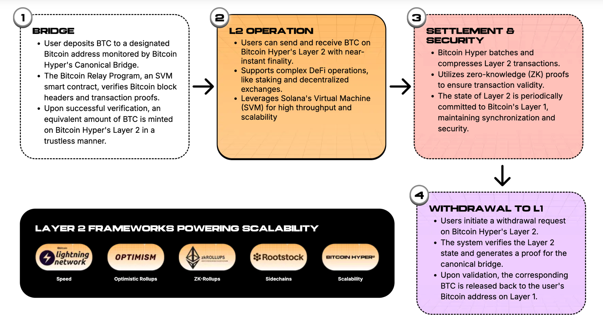 Bitcoin Hyper has a first-mover advantage as the only Bitcoin Layer 2 blockchain built with ZK-rollups and Solana Virtual Machine (SVM) tooling. This unique design aims to deliver Solana’s speeds while maintaining the core security guarantees of Bitcoin.