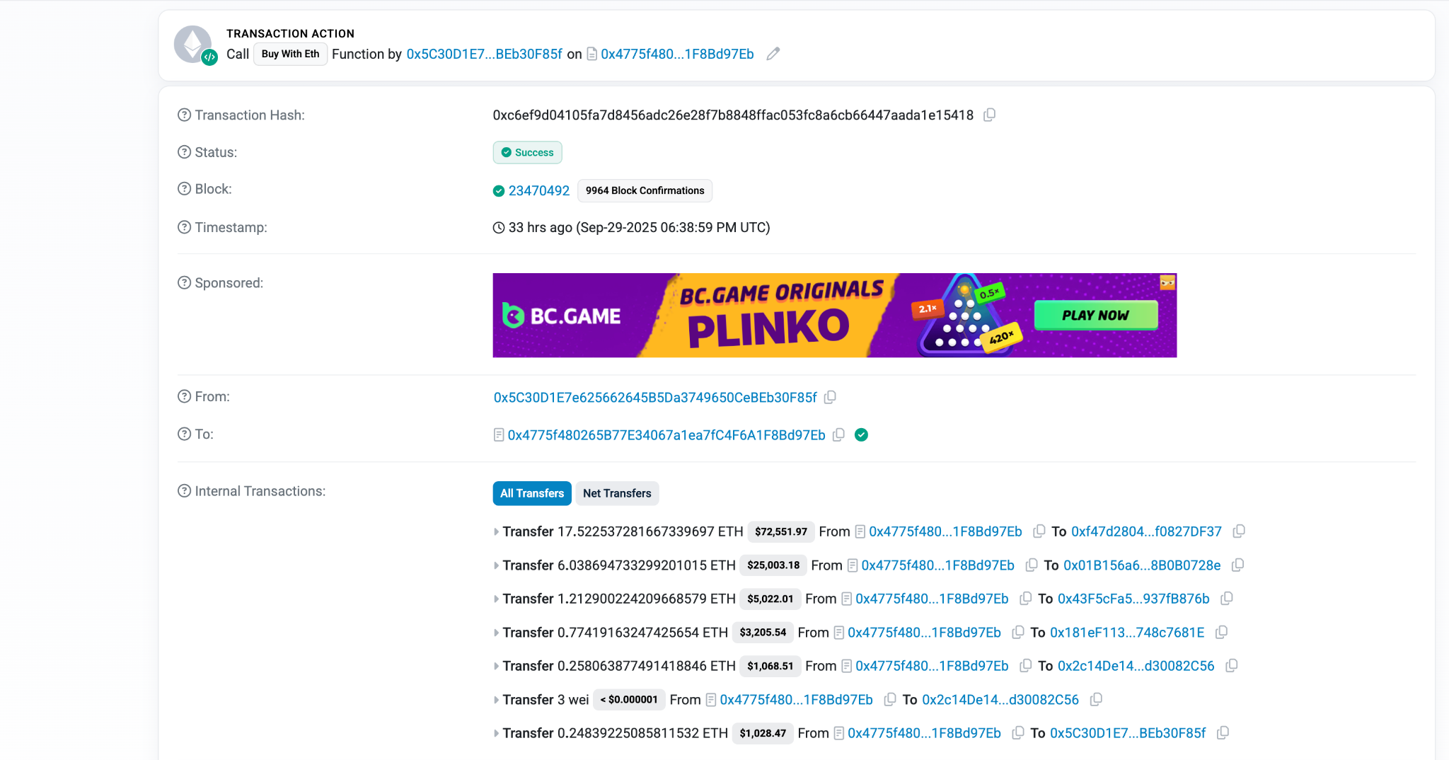 It started with a $113,000 purchase of 8.5 million HYPER at 6:31 p.m. UTC, followed by a $105,000 purchase of 7.9 million HYPER four minutes later. Then, three minutes after that, came the final investment of $109,000 for 8.2 million HYPER.