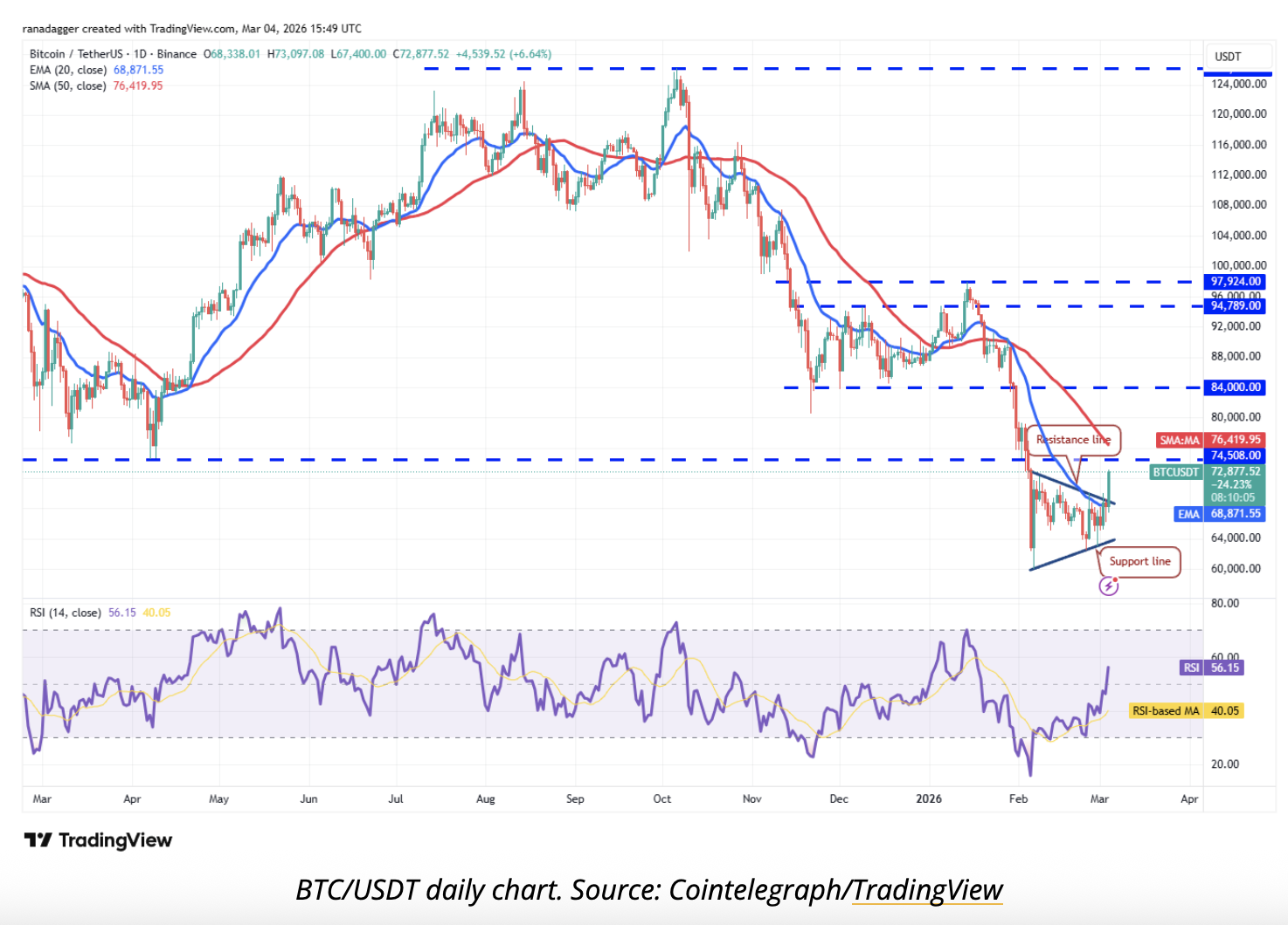 As the BTC price forecast makes plain, a close below the 20-day EMA near $68,800 would hand the momentum back to the bears. But all in all, based on Bitcoin price news more broadly, a period of consolidation is likely up ahead.