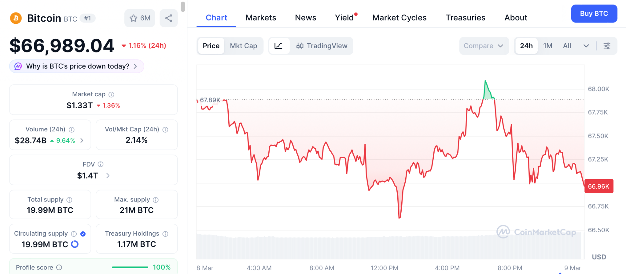 In recent bitcoin price news, VanEck’s CEO said he believes Bitcoin is forming a bottom as the fourth year cycle draws to a close. BTC tested above $74,000 this week before pulling back to $66,989 according to CoinMarketCap, and the US Bitcoin reserve still holds 328,000 BTC with no active purchase plan.