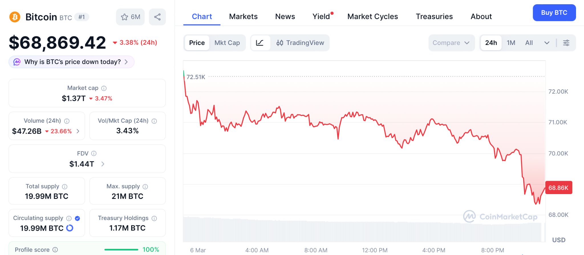 BTC consolidates near $68,869 according to CoinMarketCap with VanEck’s CEO calling a cycle bottom.