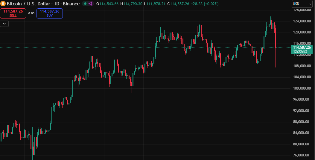 Bitcoin remains the center of every BTC news update, but the latest headlines reflect both pressure and potential. Over the past 24 hours, Bitcoin price decreased 7.86% to $111,851.62, following President Trump’s announcement of 100% tariffs on Chinese imports and new export restrictions on critical software.