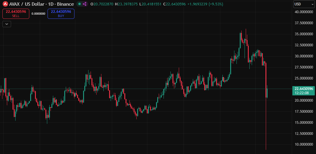 AVAX fell about 18.94% to $22.86 amid broader risk-off sentiment but remains a strong Layer-1 contender.