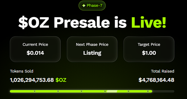 Presale performance reinforces its explosive potential. Ozak AI has already raised over $4.7 million and sold over 1 million tokens, mirroring patterns seen in previous bull-cycle champions.