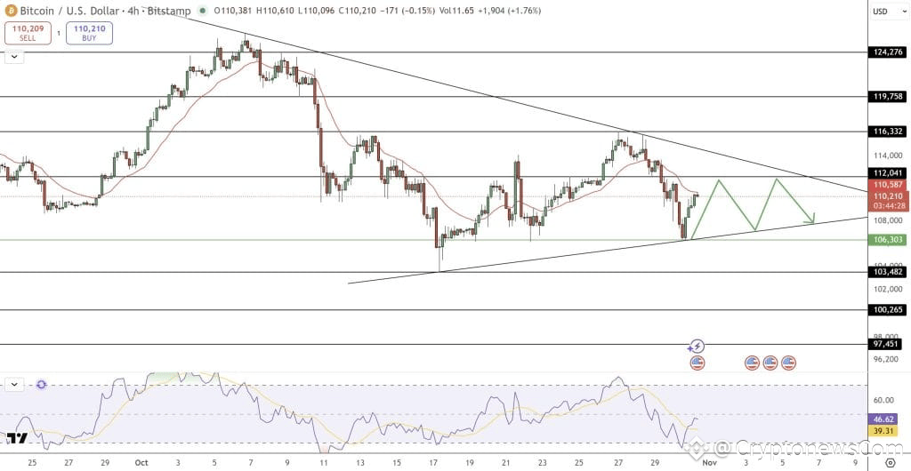 While BlockchainFX enjoys unstoppable momentum, Bitcoin continues to battle price resistance near $112,000 after its Halloween slump below $110,000. The world’s largest cryptocurrency currently trades near $110,162, with buyers defending the $106,300 support zone. Analysts note that BTC’s symmetrical triangle pattern indicates indecision, often a precursor to a sharp breakout.