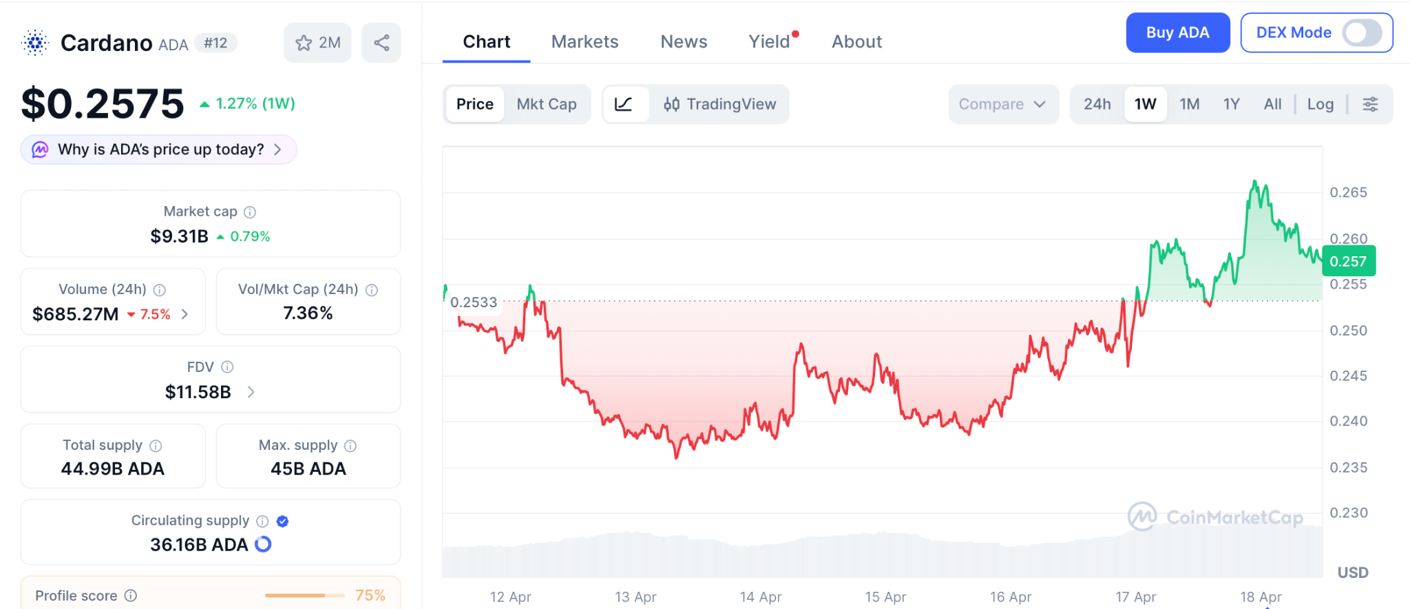 Cardano (ADA) trades near $0.257 according to CoinMarketCap, holding above the $0.23 support that stabilized through the correction. The cardano price prediction turns firmly bullish if price clears $0.29 resistance and the 50 day SMA, opening a path toward $0.38 and then the $0.48 to $0.57 corridor flagged by Benzinga analysts.