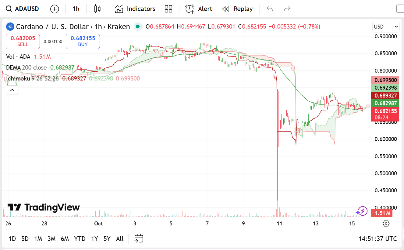 At the time of writing, Cardano (ADA) trades at $0.6889, marking a 1.76% daily gain. Its market capitalization sits at $24.67 billion, supported by a 24-hour trading volume of $1.4 billion, down 16.51%. Cardano’s network remains one of the most active in smart contract deployment and blockchain scaling, supported by increasing developer engagement. However, the ADA price continues to fluctuate within a tight range as traders wait for stronger market catalysts.
