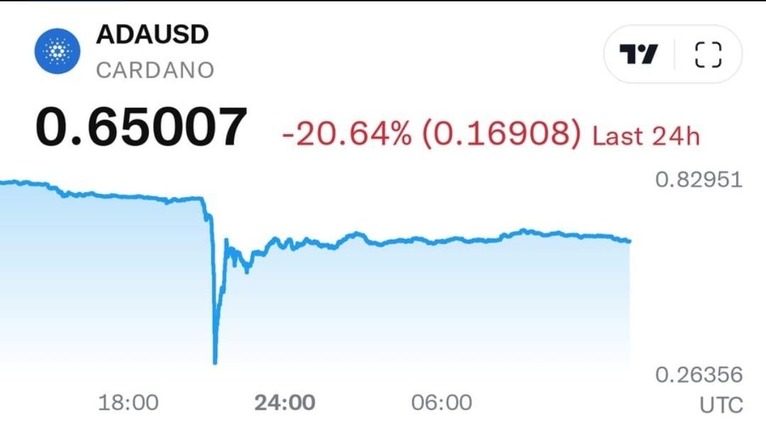 Cardano has come under fresh selling pressure as the broader crypto market retreats. The token now trades around $0.65 after losing more than 20% in a single day. Traders say renewed concern over the global economy followed Donald Trump’s proposal to impose 100% tariffs on Chinese technology imports, a move that reignited talk of a trade war and weighed heavily on risk assets.