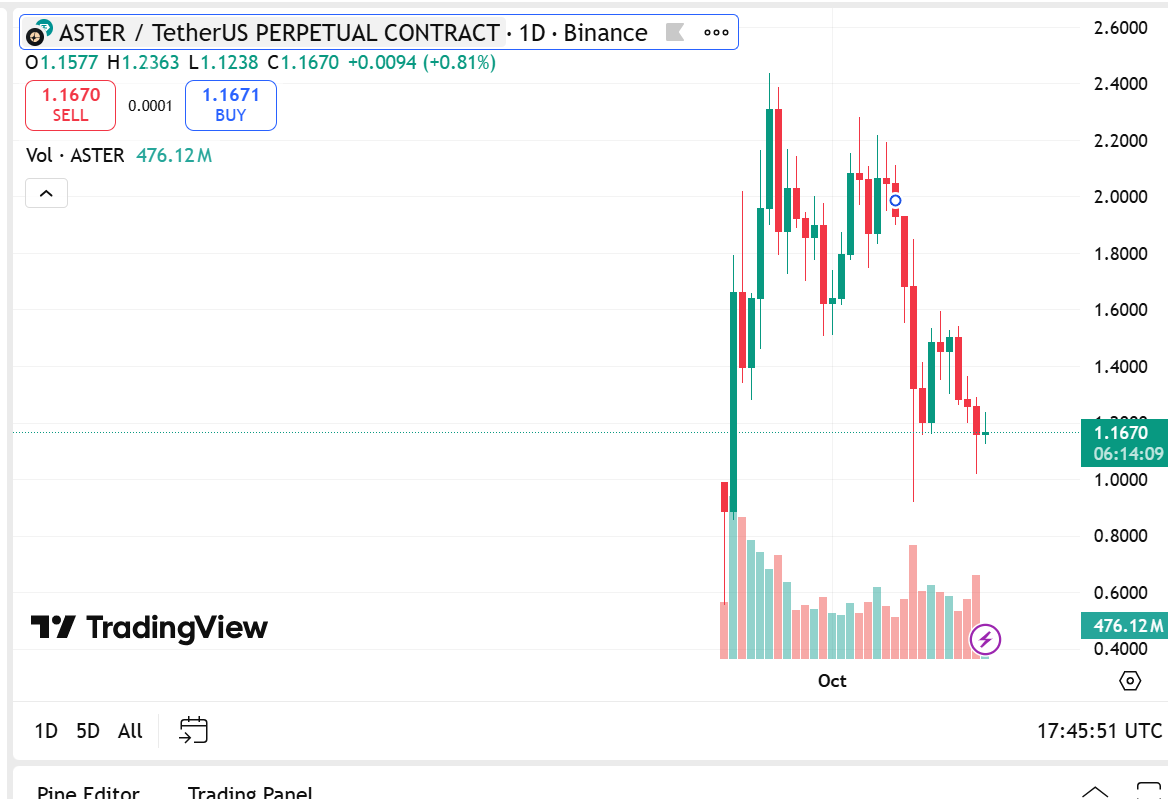 In comparison, ASTER has climbed 2.16% to $1.16, backed by a $2.33 billion market cap and $775.42 million in trade volume. While both remain relevant in the Layer-1 discussion, the investor community appears to be diversifying toward tokens offering faster integrations and real-world payment solutions.