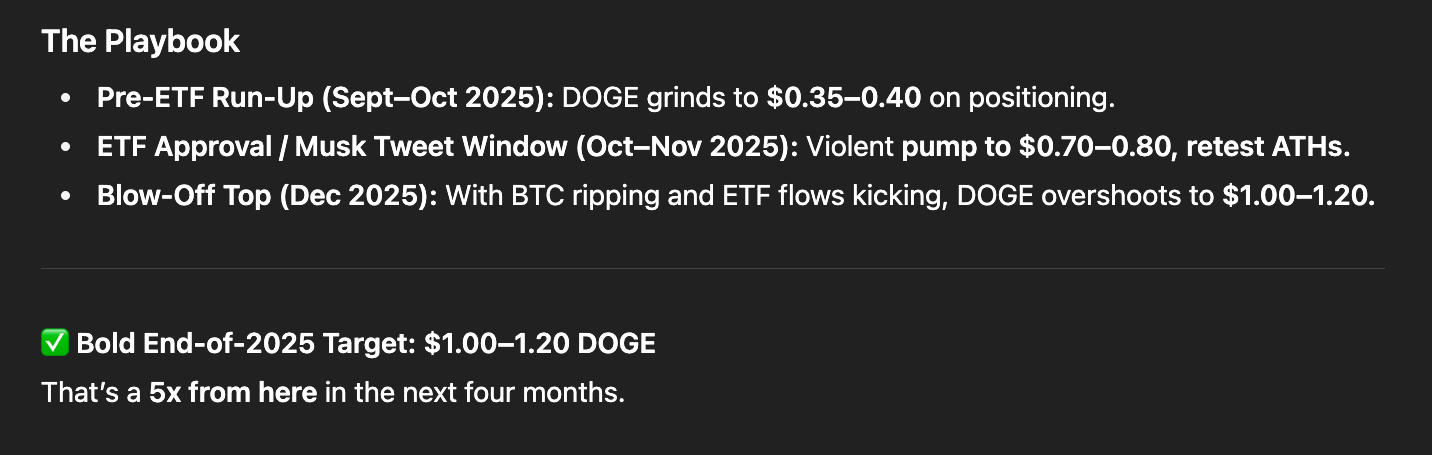 Dogecoin has been quiet lately, hovering around $0.21, but ChatGPT thinks this is the calm before the storm. The AI is pointing to two potentially explosive factors: a spot ETF of its own and the ever-present possibility of getting integrated into X for payments.