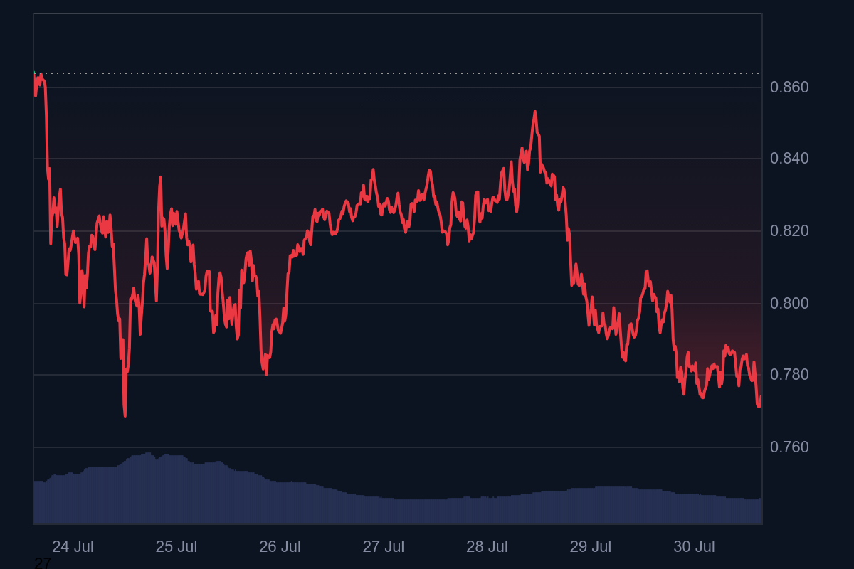Cardano (ADA) has always remained a key altcoin player. However, the recent performance is diminishing investor trust in ADA. As of now, Cardano’s price is hovering around the $0.773 mark, depreciating by over 10% from last week’s high.