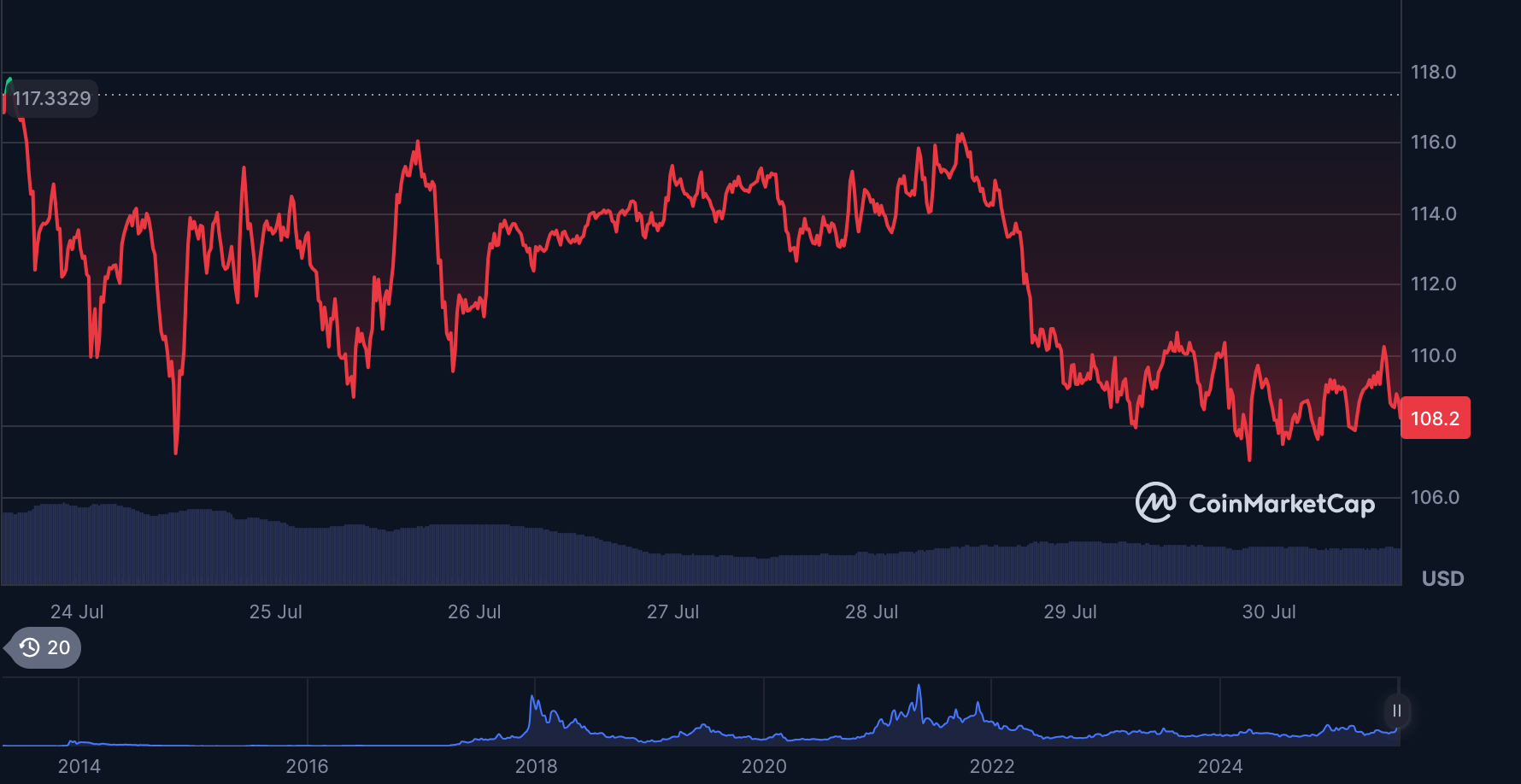 Litecoin is one of the most well-known altcoins after Ethereum. Although Litecoin exhibited bullish signals earlier this month, altcoin is turning bearish now. Currently, Litecoin’s price fluctuates around the $108 mark, plunging by over 8% from last week’s surge.