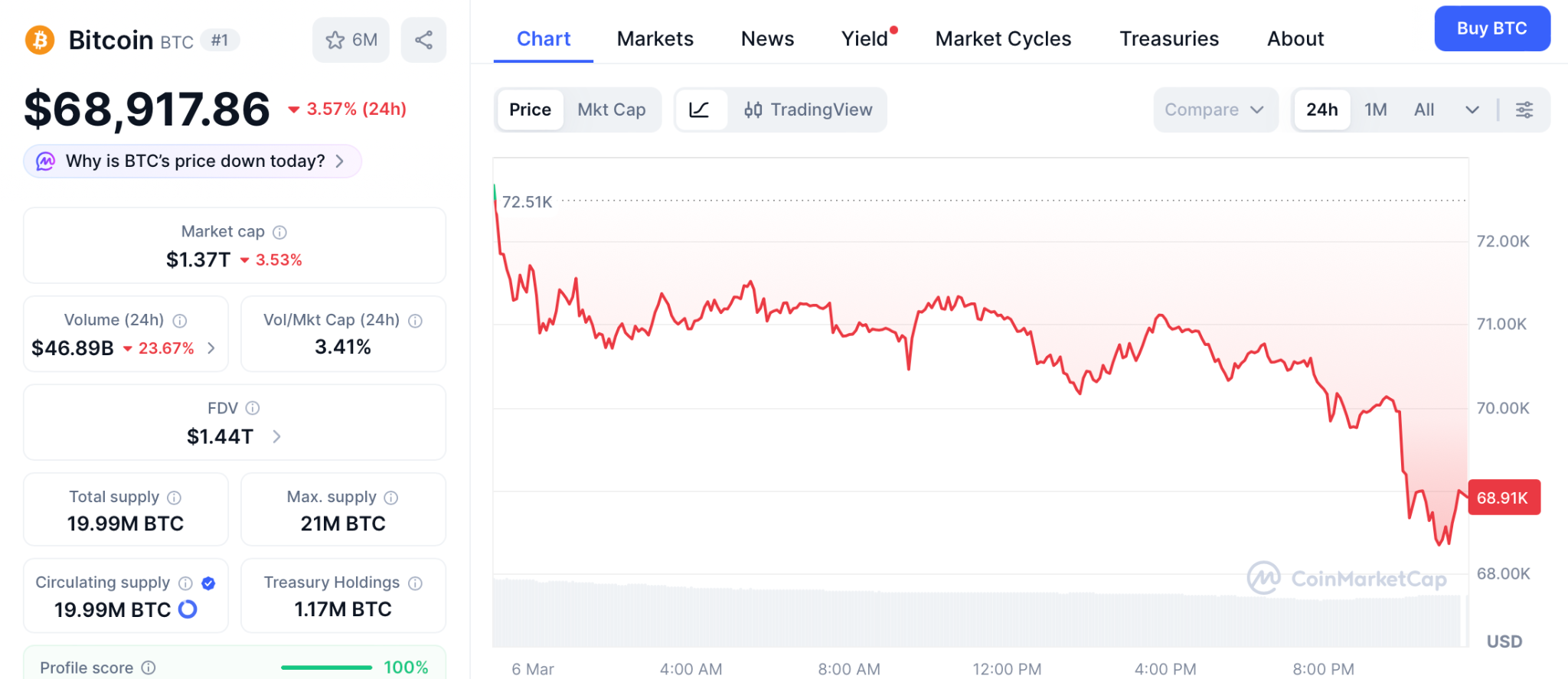 BTC holds near $69,000 according to CoinMarketCap as the crypto news today shows cautious derivatives positioning and the cycle bottom forming.