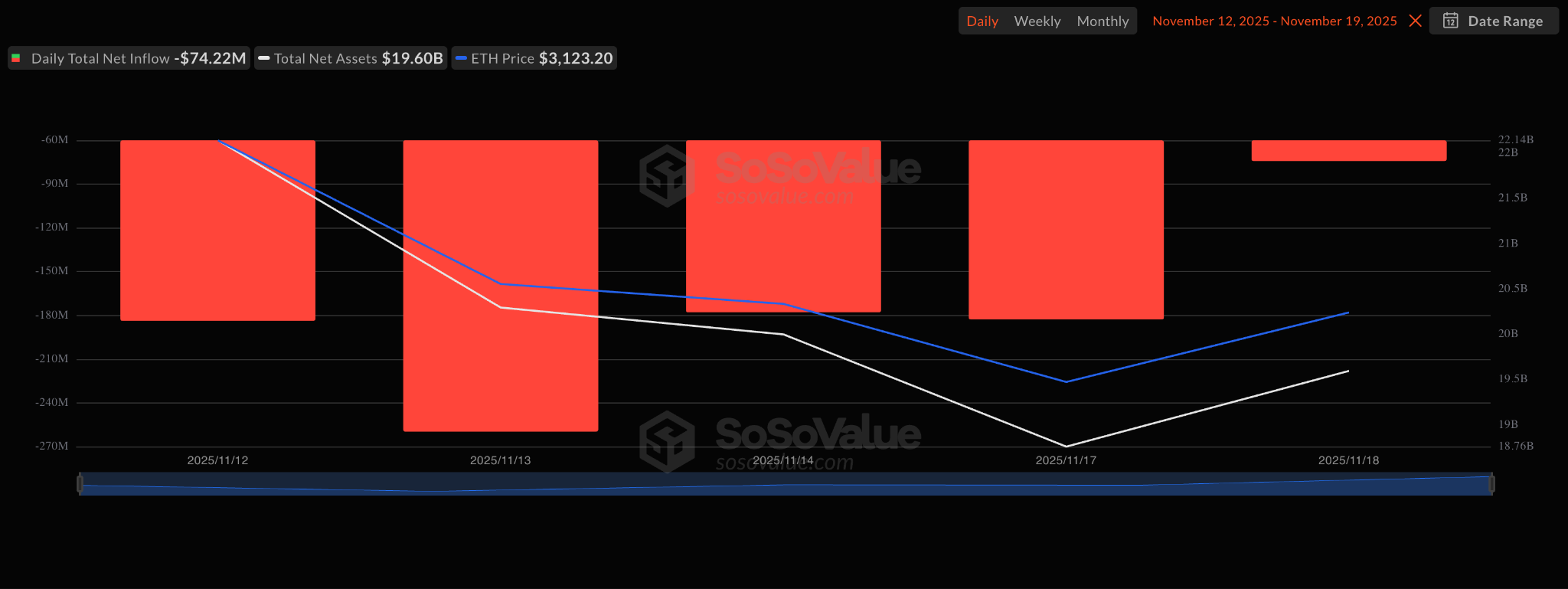Ethereum was holding just above $3,000 on November 18 after briefly slipping under key support. BitMine just added 54,156 ETH to its stash, bringing its total to 3.56 million.