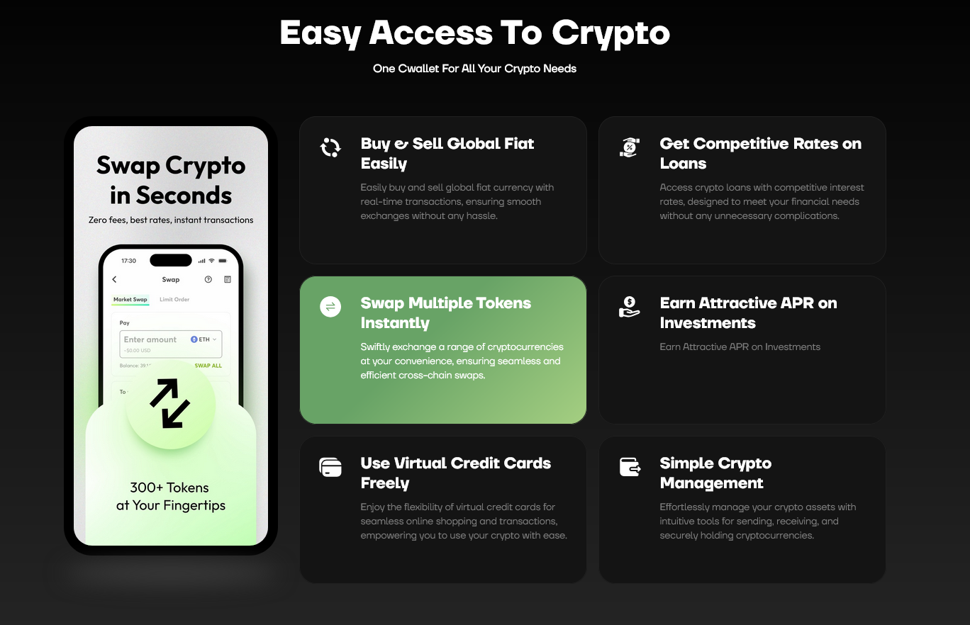 Cwallet’s comprehensive toolkit has been a key driver of its success, offering a wide range of features designed to meet the needs of its global user base. Notable features include: