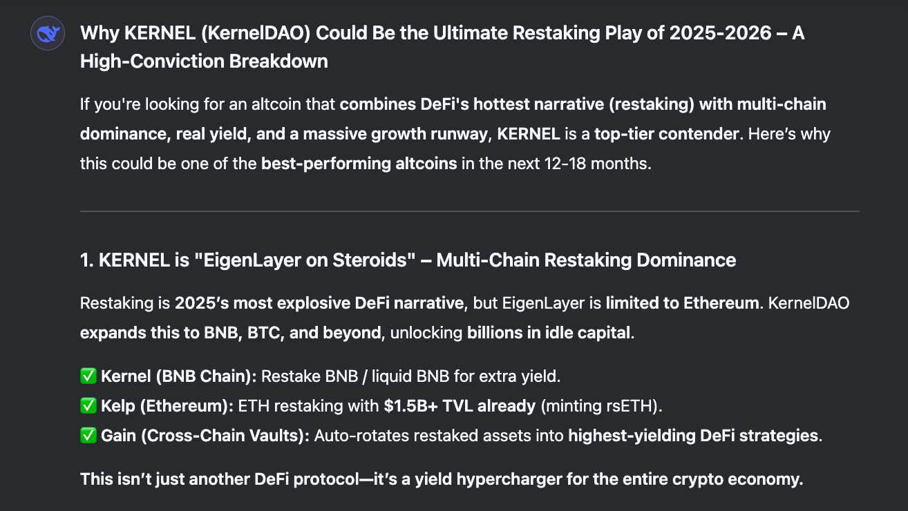 DeepSeek believes KernelDAO (KERNEL) is the multi-chain answer to Ethereum’s EigenLayer, letting users earn extra yield on staked assets like BNB and Bitcoin. Imagine earning staking rewards, validator fees, and DeFi yields all at once – that’s KernelDAO’s pitch.