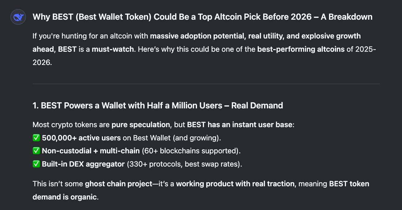 Given how crucial crypto wallets are for mainstream adoption, DeepSeek thinks BEST could become a key infrastructure token – making it a high-potential altcoin heading into 2026. Visit Best Wallet Token Presale.