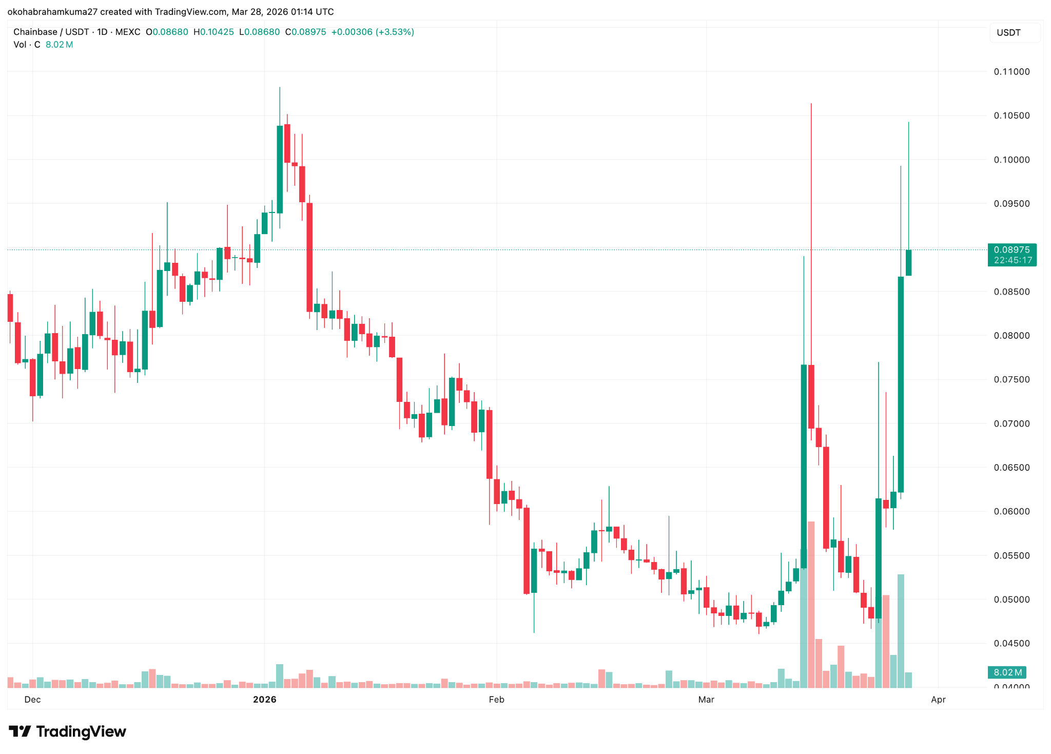 As of March 27th, Chainbase had a 58% price increase, outperforming the global market average over a seven-day period. However, the coin remains heavily burdened by very high volatility at 13% and a completely neutral RSI.