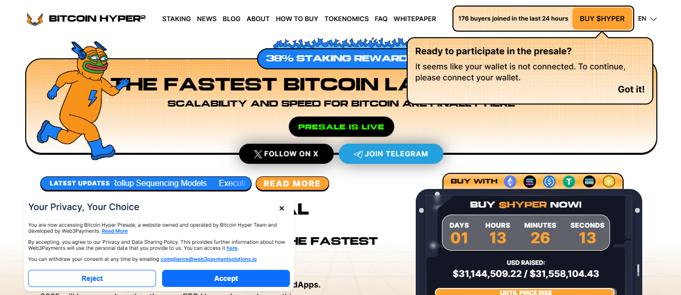 Bitcoin Hyper raised over $31 million, positioning itself as a Layer 2 solution using the Solana Virtual Machine to enable faster Bitcoin transactions. The project targets developers building DeFi applications around Bitcoin’s infrastructure, offering an alternative to established Layer 2 options.