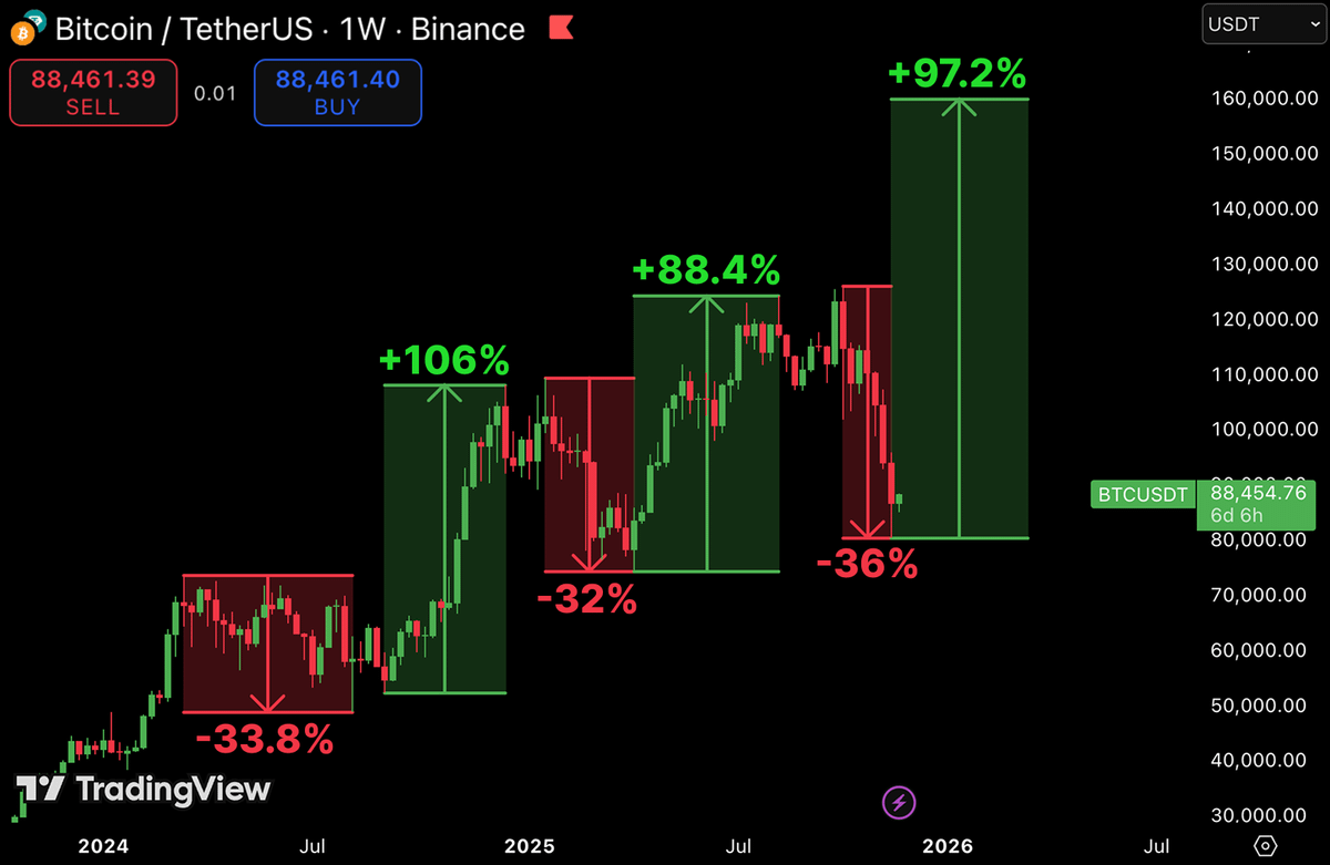 Every time Bitcoin has retreated by about 30%, it has risen almost 100% from the local low. This means that if the pattern repeats, BTC, having touched approximately $80,000 on November 21st, may have marked the local bottom for a new move to new highs with the target of almost $160,000.