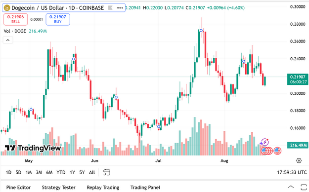 Dogecoin has thrived on Elon Musk’s social media support for quite a while now, but in the absence of fresh endorsements, investors are left unsure of its near-future direction. Currently, DOGE is at $0.2193, up 2.66% in the last 24 hours, with a market capitalization of $33.02 billion and a trade volume of $3.36 billion, showing a rise in activity by 16.81%.